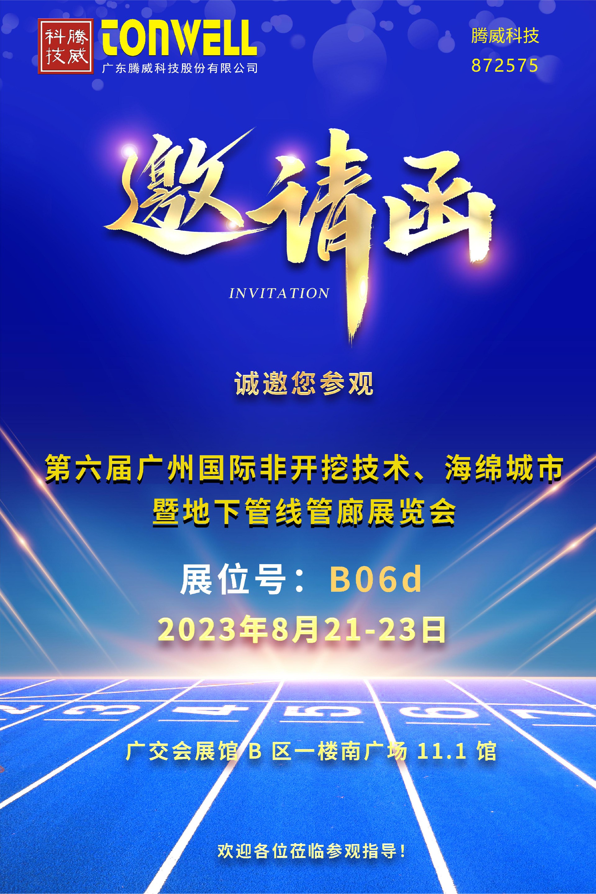 2023年8月21日-23日第六屆廣州國際非開挖技術、海綿城市暨地下管線管廊展覽會在廣州·廣交會展館B區(qū)舉辦廣東騰威科技股份有限公司誠邀各位合作伙伴及客戶蒞臨參觀、洽談合作!我們,廣州見!