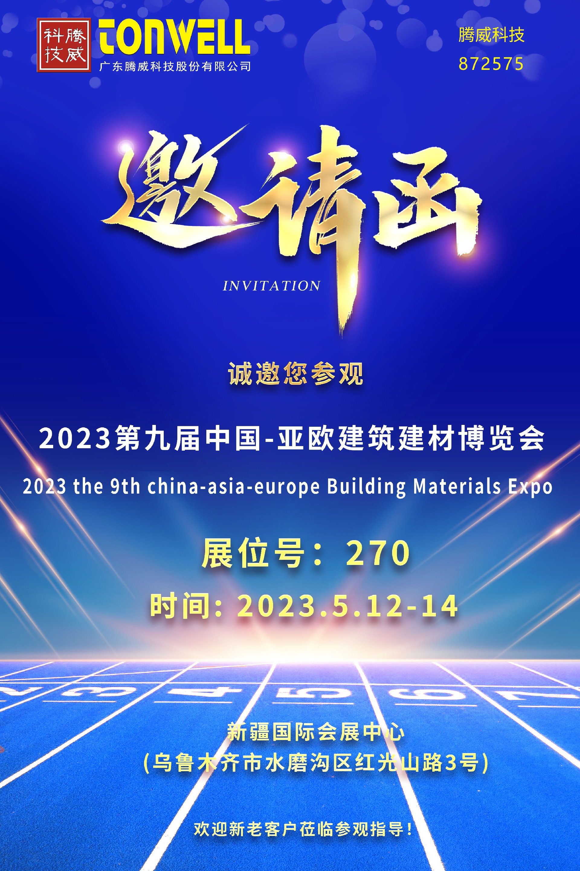 2023年5月12日-14日第九屆中國(guó)-亞歐建筑建材博覽會(huì)誠(chéng)邀各位合作伙伴及客戶蒞臨參觀指導(dǎo)!我們,新疆烏魯木齊見(jiàn)!