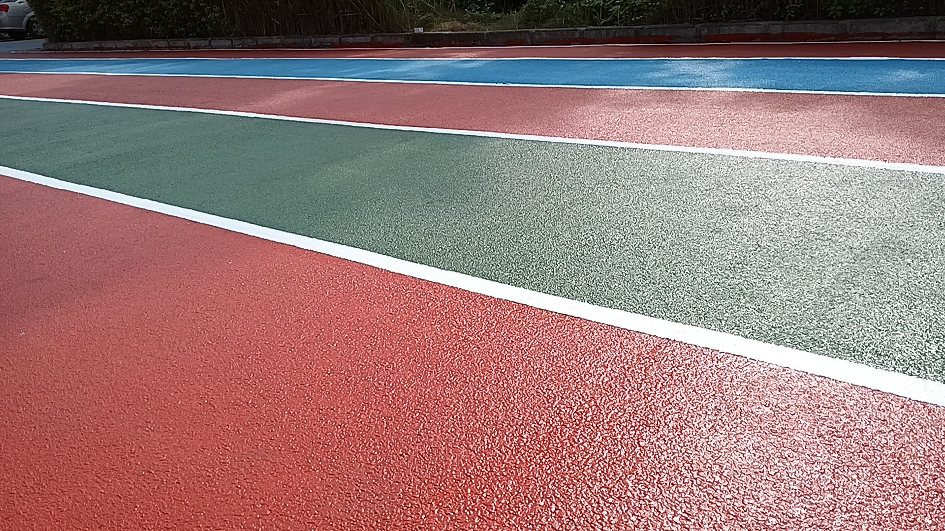 公司彩虹跑道實(shí)驗(yàn)鋪裝已經(jīng)滿4年,含有紅、綠、藍(lán)三個(gè)顏色(其中一道為預(yù)制型卷材),表面沒(méi)有涂裝任何覆蓋層。歷經(jīng)4年,綠色的稍有褪色,紅色、藍(lán)色跑道面漆都沒(méi)有褪色;表面污漬較多、但都沒(méi)有粉化掉色。近日公司技術(shù)部同事對(duì)我司生產(chǎn)基地的彩虹跑道進(jìn)行了翻新。采用材料為S-30聚脲耐磨面層材料。(翻新前)(翻新中)(翻